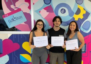 Mariángel Jiménez, junto con Ashley Obando Sorio de la carrera de Publicidad y Juan Ignacio