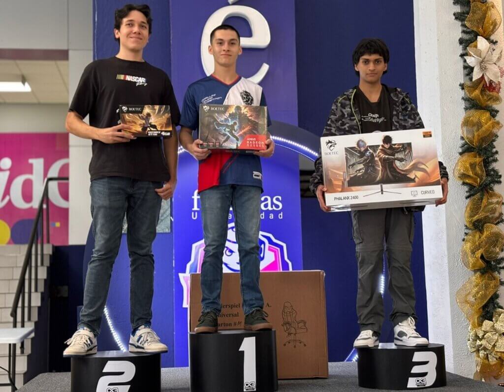 En la competencia de FC25 destacaron tres muchachos con excelente dominio del balón. El primer lugar lo obtuvo Mauro Andrés Piedra Morales, estudiante de Sistemas, y quien se coronó bicampeón. Recibió un Nintendo nuevo de paquete. El segundo premio fue para Sebastián Gamboa de la carrera de Ciberseguridad. Gamboa ganó una silla para gamer. El tercer lugar fue para Luis Rojas Umaña, de la carrera de Mecatrónica, cuyo premio fue un kit completo para gamer.