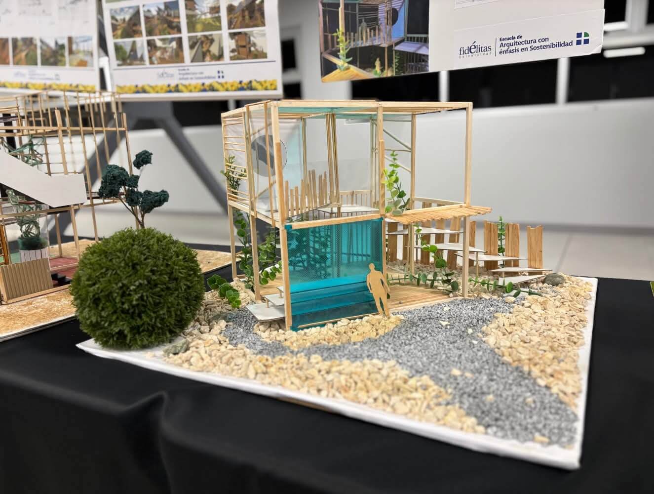 En la carrera de Arquitectura con énfasis en Sostenibilidad de U Fidélitas, única en Centroamérica, los estudiantes trabajan mediante la Metodología STEM, integrando diseño, tecnología y sostenibilidad en sus maquetas y proyectos arquitectónicos, lo que les permite fortalecer sus habilidades esenciales y su conocimiento en arquitectura verde y sustentable.